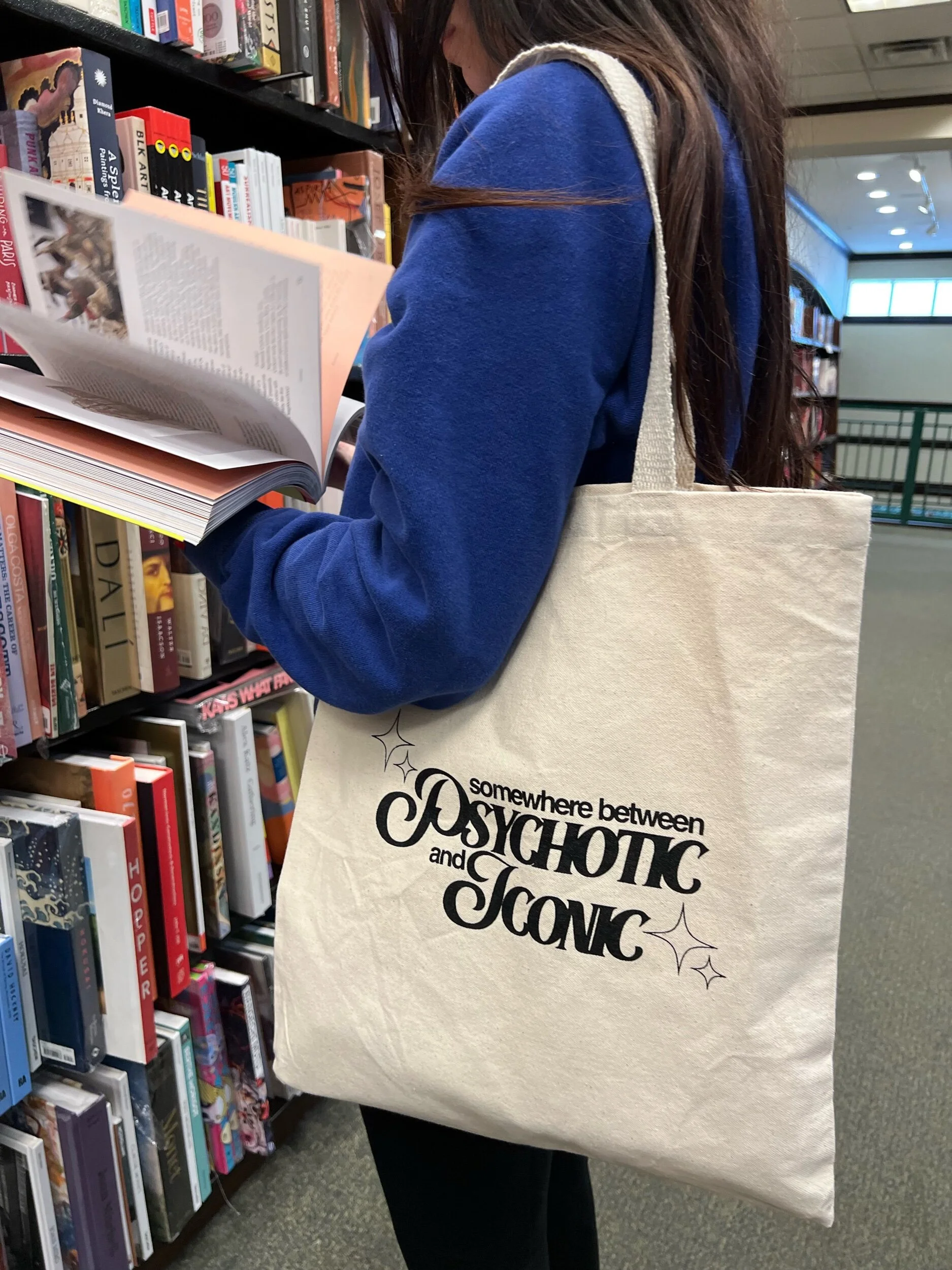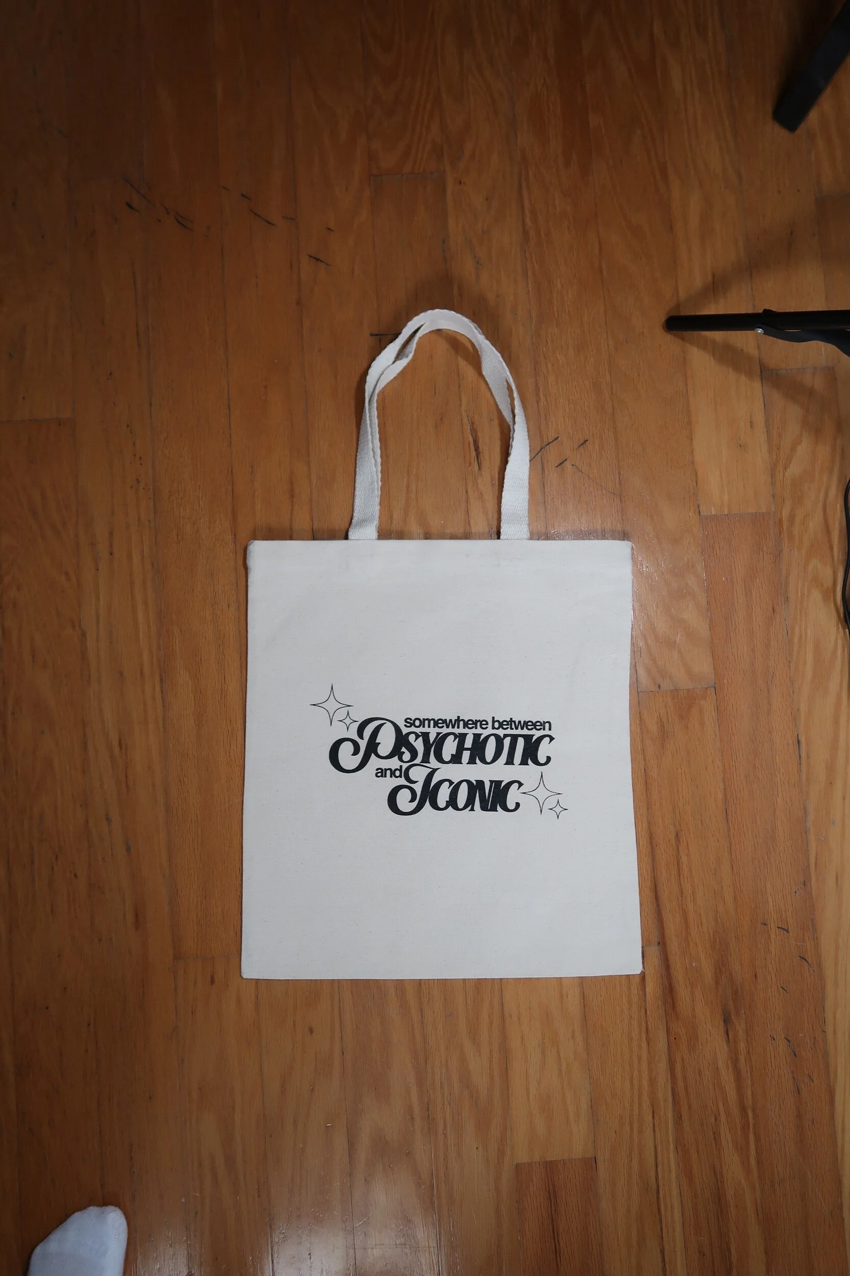 "psychotic and iconic" canvas tote bag